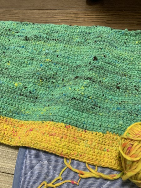最初毛糸を見た時、毛布が編めると思って動画を見たけど、レース部分が編めなくて毛布にします。毛糸は人生初の野呂栄作さんです。