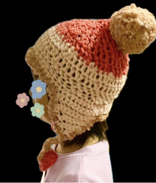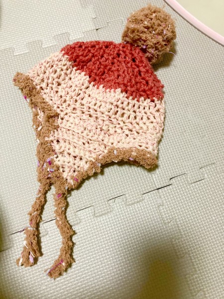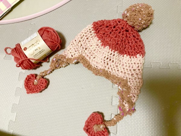 | 冬用に、娘に、耳あて付の帽子を編んでいます。 紐には、ハートのモチーフを⸜(*ˊᵕˋ*)⸝ 耳の部分に、猫ちゃんと、くまちゃんのモチーフをつけてあげる予定です♪ 可愛さ満点になる予定。 |