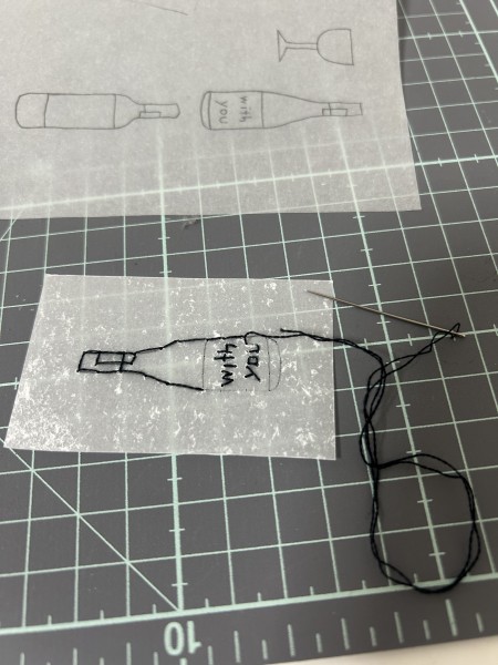 グラシン紙に一本取りで刺しました。裏の渡り糸を目立たせないように工夫しました。