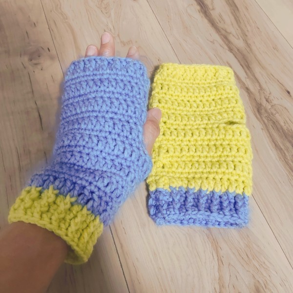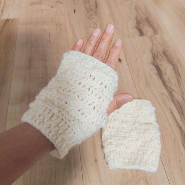ハンドウォーマー2種類作りました。白い方はNHKのすてきにハンドメイドで放送していたつぶつぶハンドウォーマーの編み方です。カラフルな方は8号と6号のかぎ針編みで、細編みと長編みを交互に。去年の毛糸の余りなので小さいものをと思い編んで見ました。
