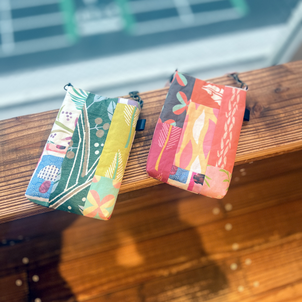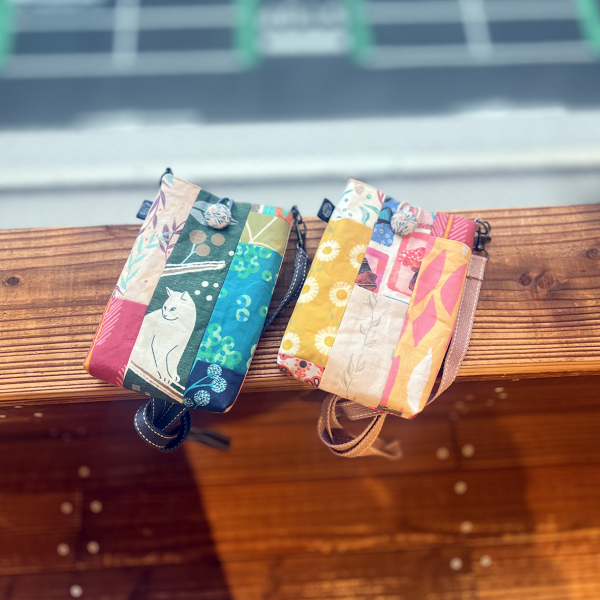 『自分用に柔らかめの優しい色合わせと、友人用に賑やかな感じの色合わせで』、という希望でサコッシュを頼んでいただきました。