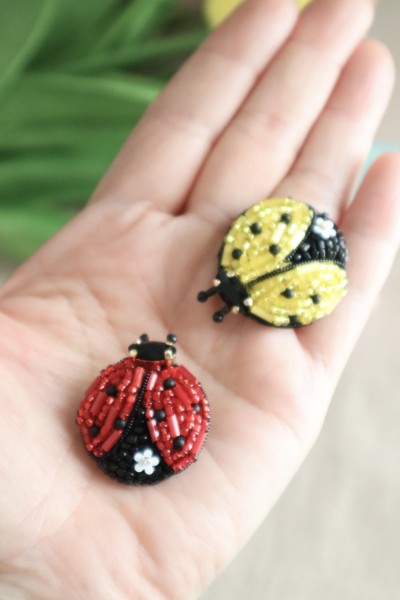 膨らませて刺繍するバルーン刺繍を使ったふっくらてんとう虫。 手足をつけると、虫になりすぎるのであえてつけずに。