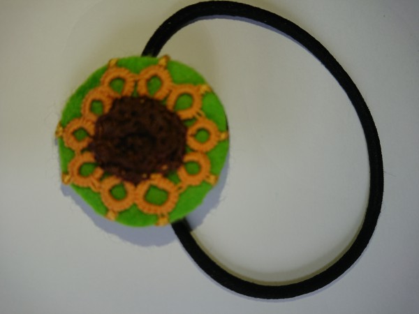 タティングレースひまわりモチーフを使って、ヘアゴムを作成
