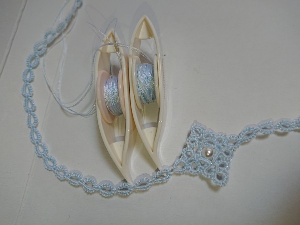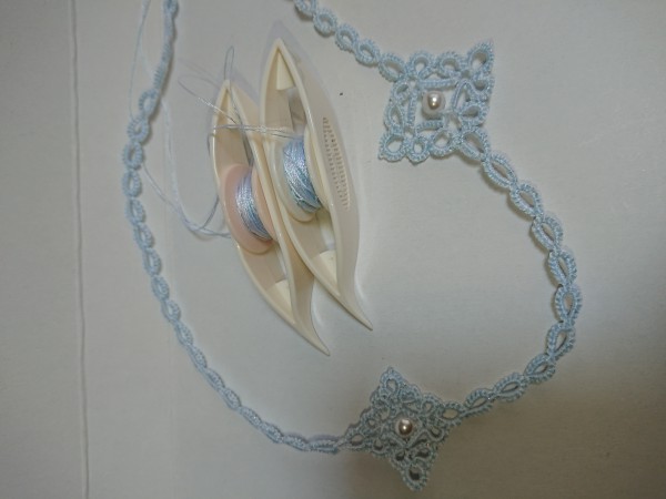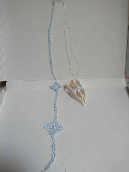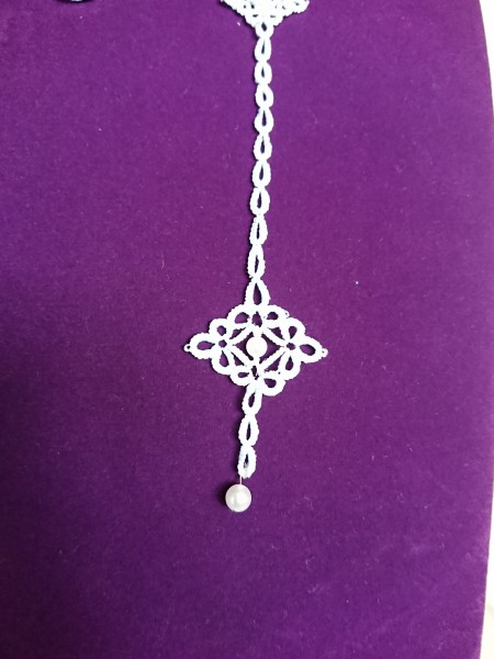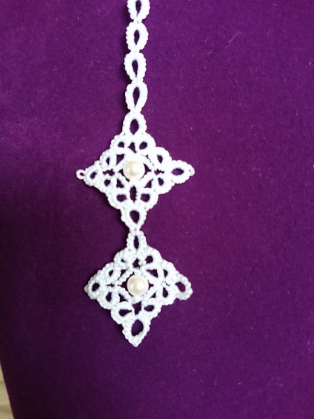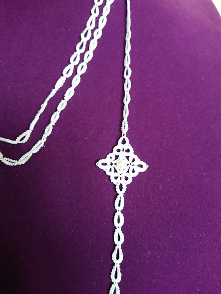 | タティングレース ネックレス スプリットリングひし形モチーフを続けて編む 160cmのラリエットが完成 |