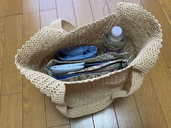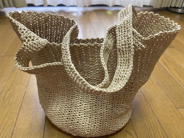 何年か前にエコアンダリア で作った模様編みバック。今回はデザインを変え少し大きめのショルダーにして作りました。
