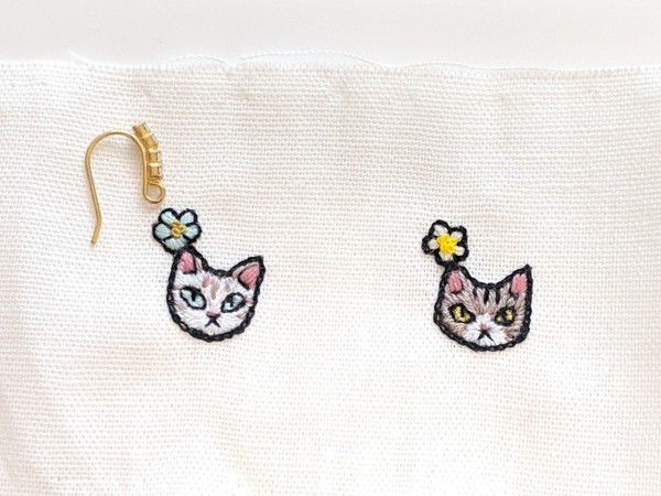 1本取りで猫を刺繍しました。 どうやってパーツに付けようか悩み中です。