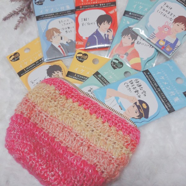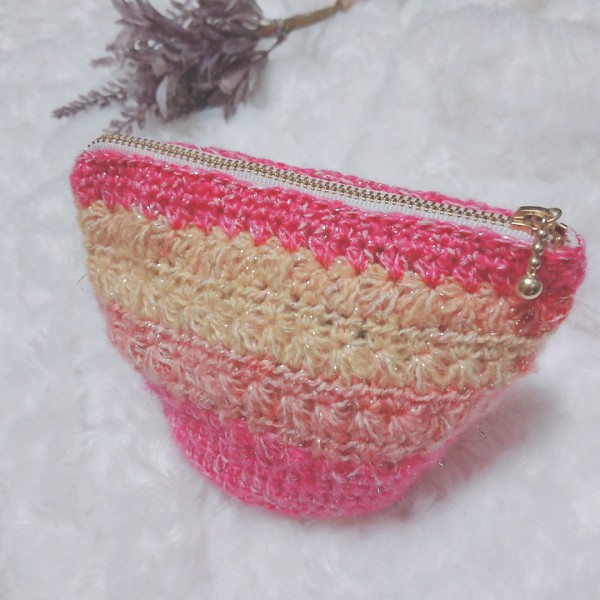 1度がま口にしていた糸を全部解いて新しくポーチに編み直しました。円底でコロンとした形に。