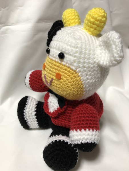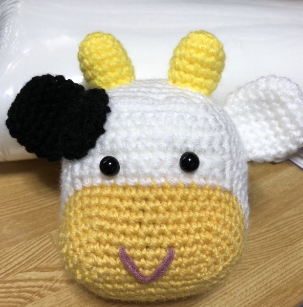 牛の編みぐるみを作りました。全体パーツを付けるバランスに苦労しました。