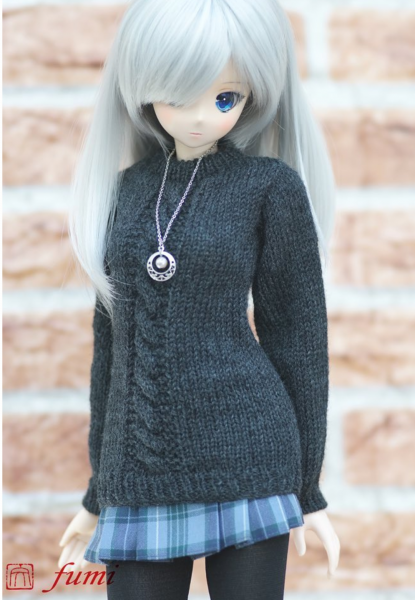 市販のセーターがシンプルかつ可愛くて欲しかったんですが、子供サイズしかなかったので、ドールサイズで再現しました。opal単色・チャコール使用、写真:文(ふみ)様
