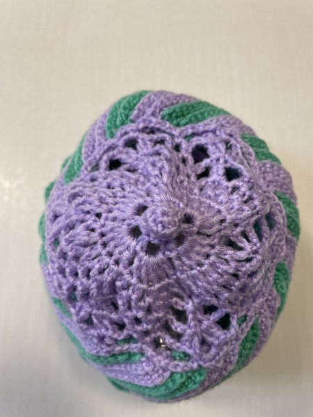 | 斜め縞模様のティーコゼ。 紅茶が冷めるのが嫌で編むことにしました。 毛糸のティーコゼは大きめに編むとくたっとしちゃうしぴったりに編むと不恰好になっちゃうし難しい。 |