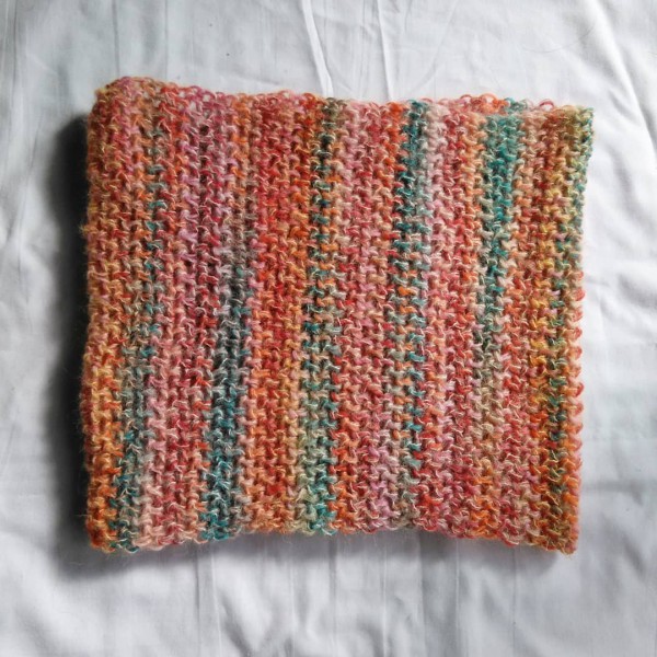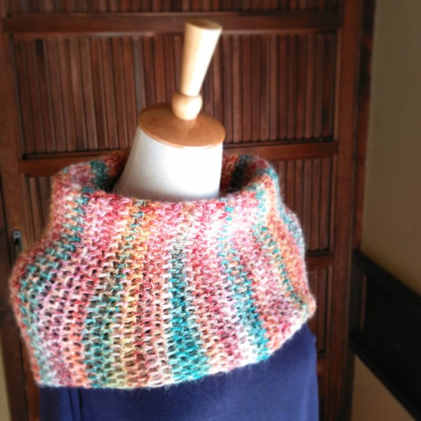 見た目はかぎ針編み、操作はアフガン編みに似ています。軽くて柔らかく伸びます。