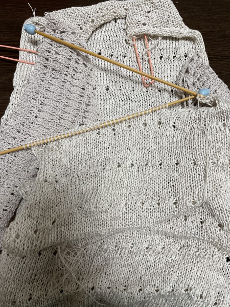 間が空きすぎてどんな編み方でどこまで編んだのか思い出すのが大変。