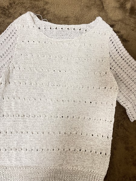 | ヴォーグ社「ヨーロッパの手あみ 2019年 春夏」より夏物、小さな衿のニットブラウス。 夏に編んでたけど毛糸があと少し足りず、冬物毛糸と一緒に最近買い足し。 生成りだからロットは気にしない! 冬物の前に編み上げたいけど着るのは来年までお預け。 |