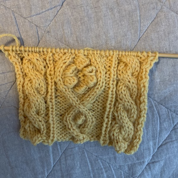 アラン模様のボッブル編み可愛いな(╹◡╹)♡
