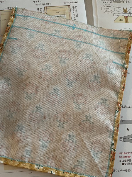 | フェリシモお裁縫おさらい帖の会其の4の最後の作品、がま口ポーチ。 ずっと放置してて今日久しぶりにやって完成させました。 面倒でチャコペン落としてないです。 |