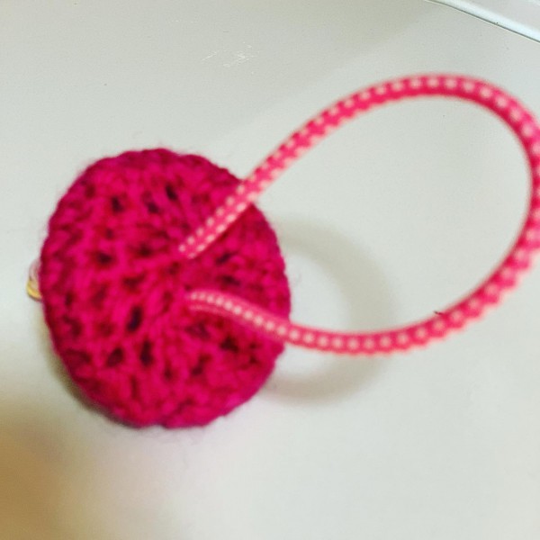 くるみボタンに編みかぶせてヘアゴムを作りました。