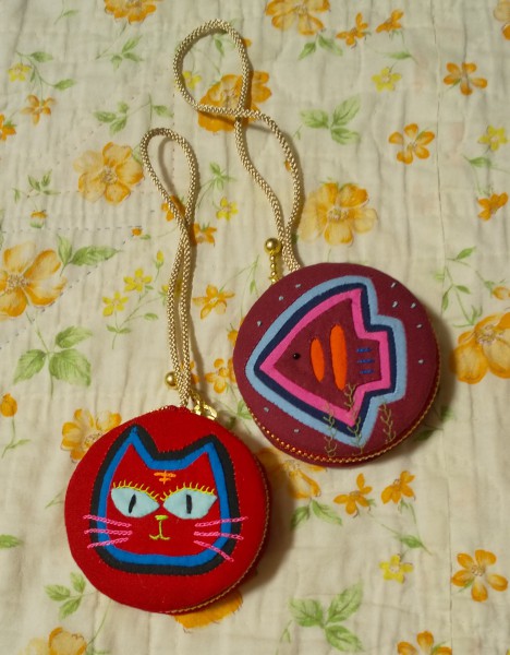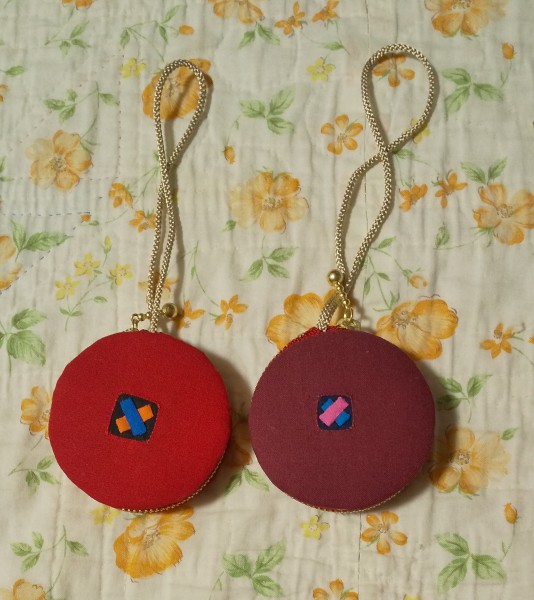 マカロンコインケースのアレンジで、内ポケット付き。指輪やピアス、薬、小銭などを入れて。