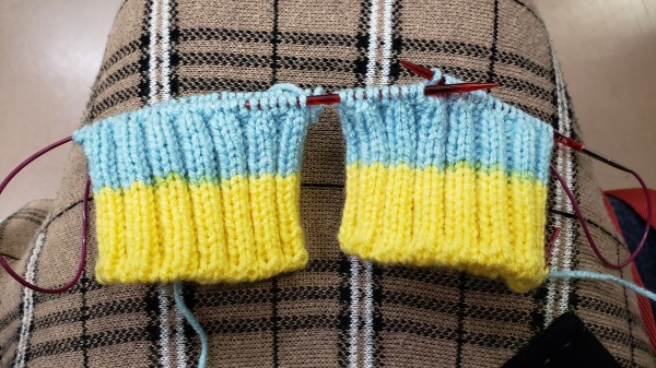 黄色から始まって水色に糸の色が変化してきたのが楽しい。