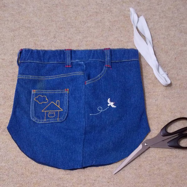 子ども用デニムパンツを、リメイクしてショルダーバッグにしました。