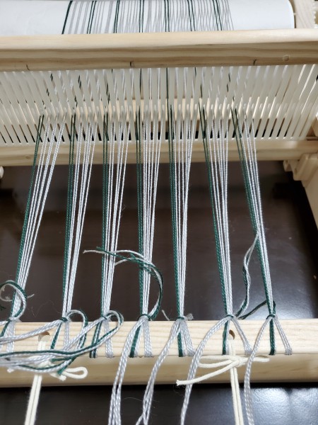 織りあがったのですがちょっとイメージが違ったのでたて糸を張りかえてもう一度やり直しています