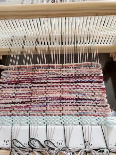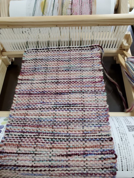 たて糸を張ったらどんな風にできるのか見たくてどんどん織り進んでいきます