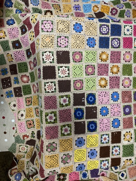 何年も買い溜めてあったキット、やっと完成させることができました。小さいモチーフ合計480枚を繋ぎ合わせ、190×240cmのこたつカバーに。