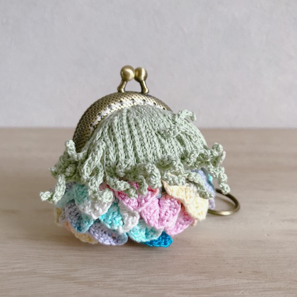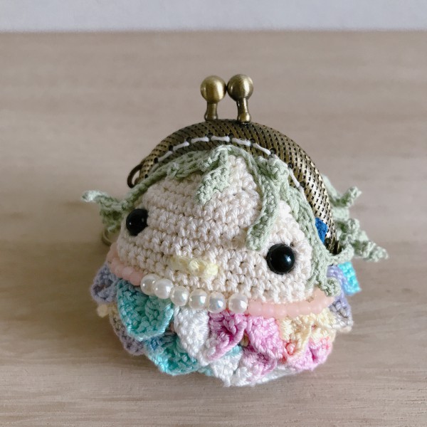 グラデーションの系でうろこを編んで良かった〜配色に困らなくてすんだもの。今回、かみの毛に使った系が細いからちょっと時間がかかりました。