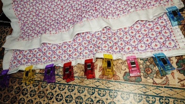 フキンの枠外の処理を最後にしたため、ギャザーの寄った仕上げになりました。