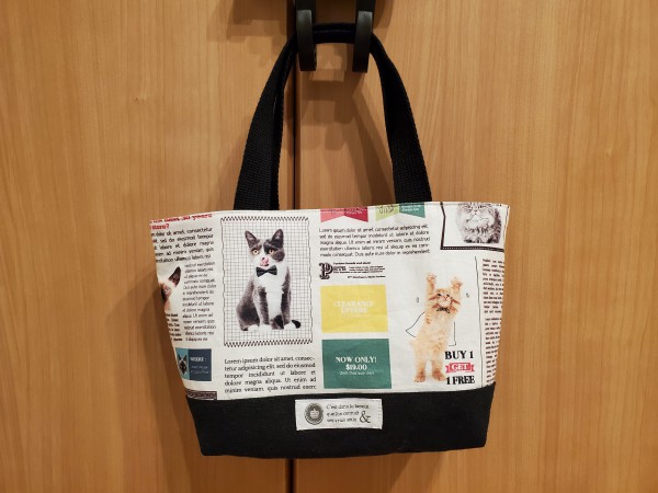 ネスホームさんの猫生地を使用してミニトートを作りました。