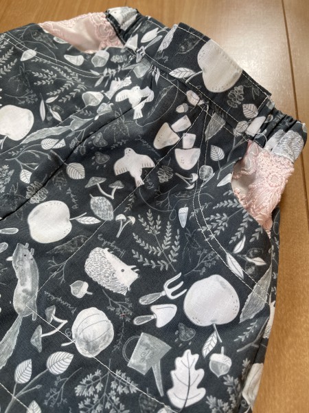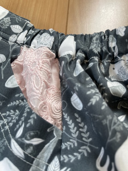 女の子用なのでポケット布はピンクのレース地にしてみました