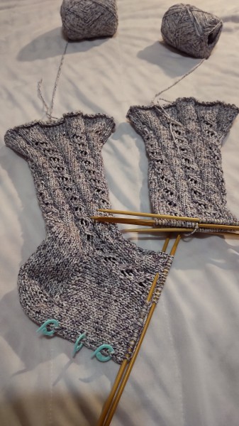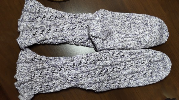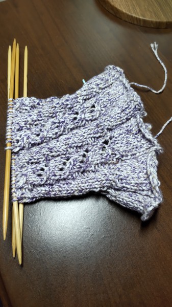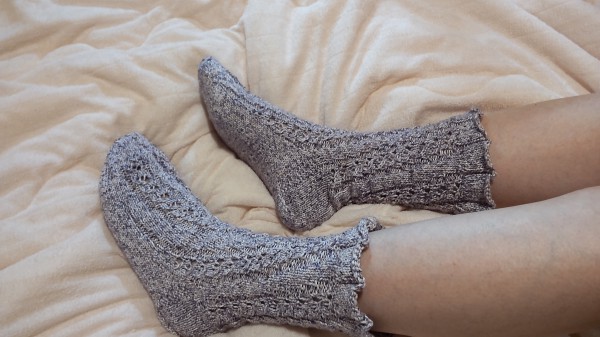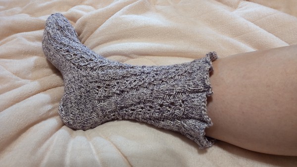履き口フリル編み、レイジー・レースのスパイラルソックスにしたら、軍足風味が消えてくれたので、ちょっと持ち直してきました。
