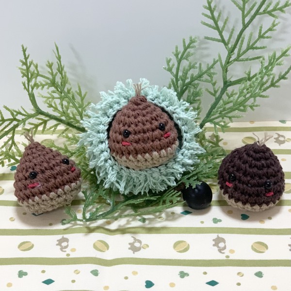 栗には目と赤みを添えて可愛らしくしてみたら、イガイガも作りたくなって