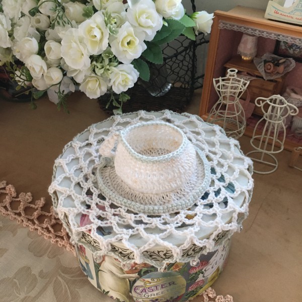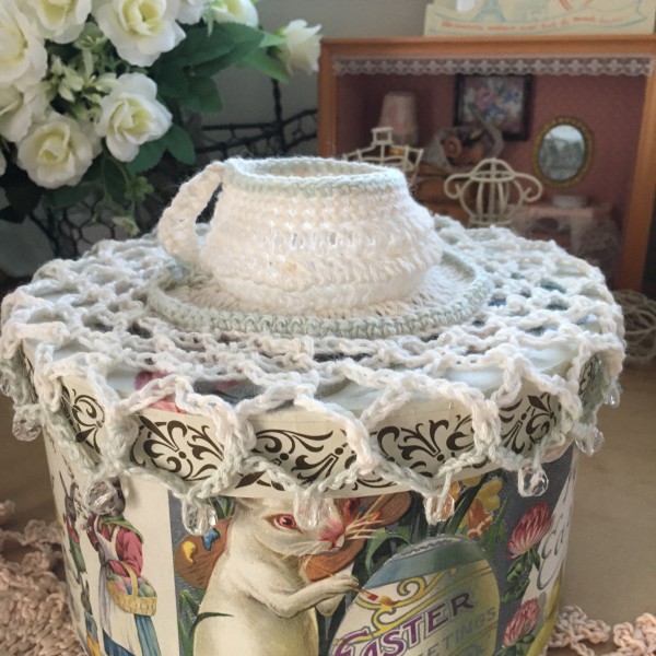 虫除けや埃よけにカップやジャグにレース編みのドイリーを被せるなんて、優雅な時代だなぁと思う!