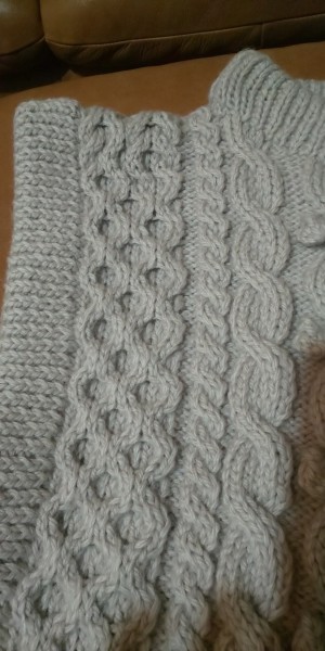 縄編みがとても素敵です! 半月で編めるなんて素晴らしいですね(≧∇≦)