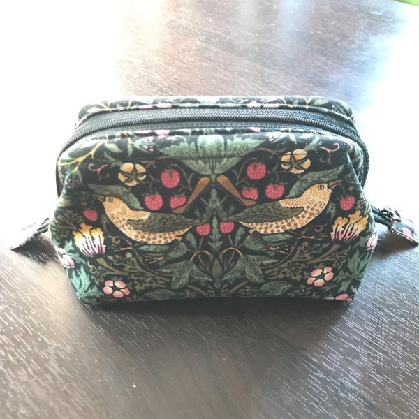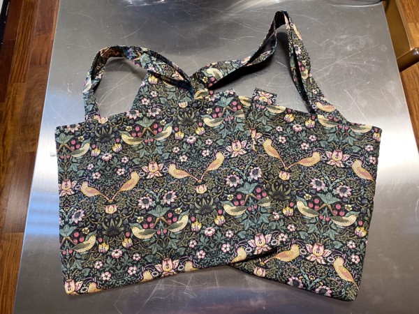 | 洋裁教室で場所をお借りしている西八王子の「Izumo Art Gallery」様より、壁紙に合わせてウィリアム・モリスの苺泥棒の座布団カバーをオーダーいただきました。 その残り布でお作りした、ワイヤーポーチ2個と、ワンマイルバッグとマクラメボードバッグです。 お側でお役に立ちますように! |