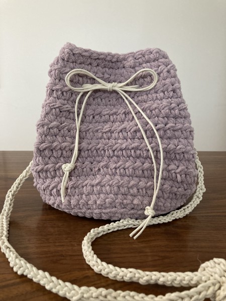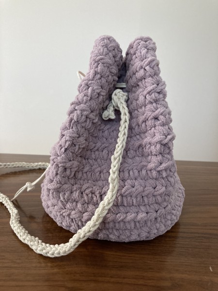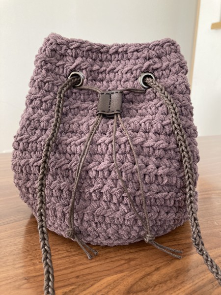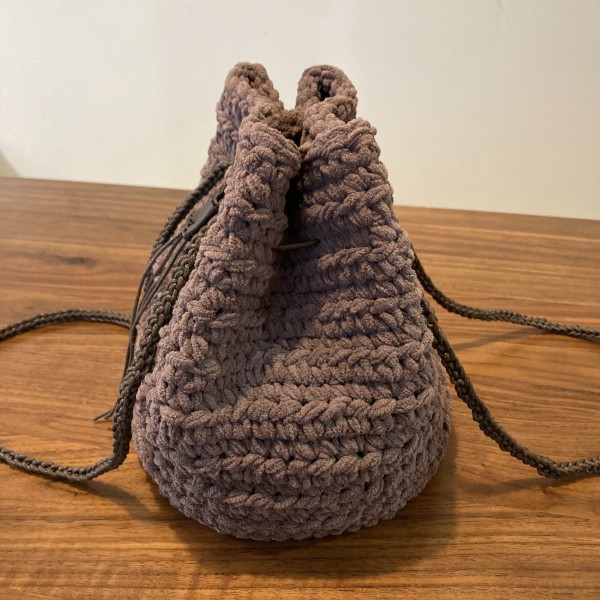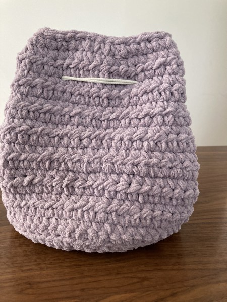 大きさとモコモコ感はいい感じ。あとは持ち手の紐を通す部分にハトメをつけたい。コードストッパーを作り直そうか考え中。