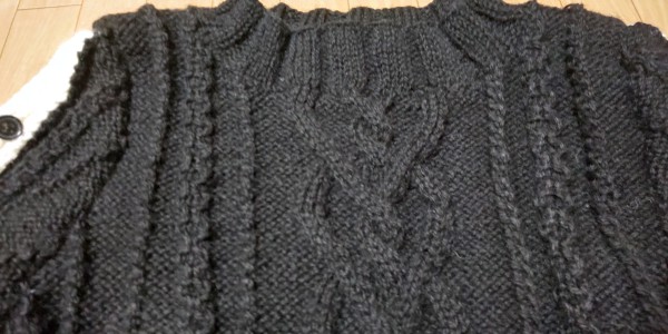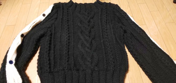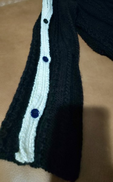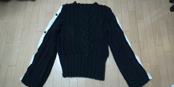オープンスリーブのセーターです。黒地に袖のボタンには白いラインを。