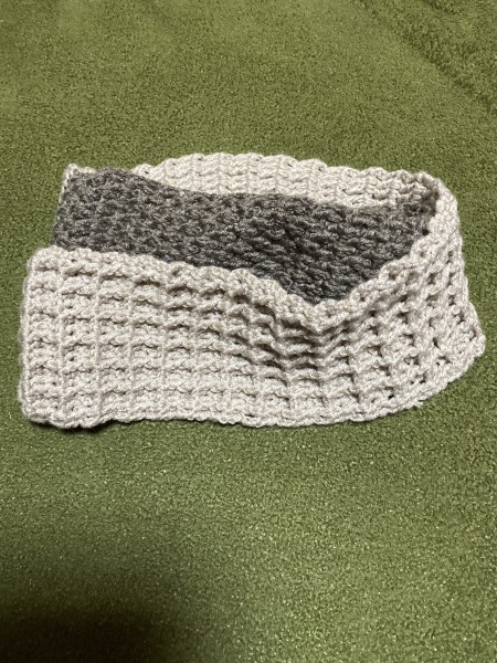 ハピママさんのスヌードを作りました。DAISOのメランジ計3玉使いました。