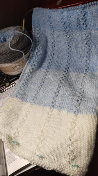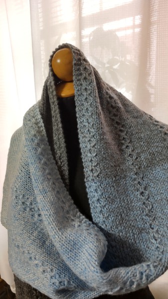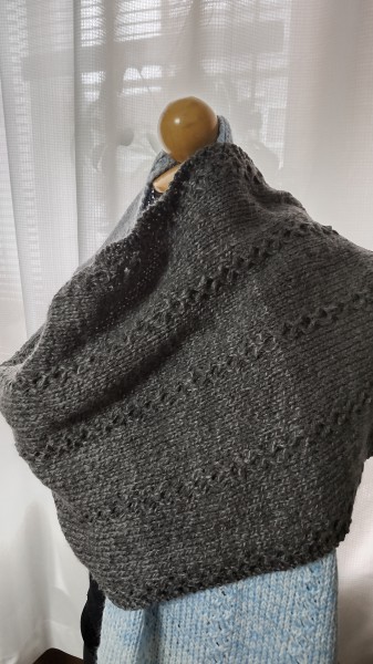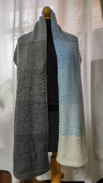 | フラワーロールメリノでグラデーションのストール 関節炎を様子見ながら少しづつ編んでたので、時間かかりましたが、こちらはまだ寒いので活躍しそうです。 ギリギリまで毛糸を使って、残りは30センチほどです。 |
