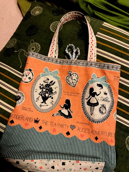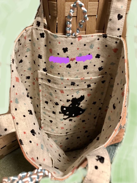 | 作ったの去年の4月です^^;学校で使う移動教室用バッグ。 内側にアリスワッペンをつけてかわいく、ミシンで名前の刺繍?もしてみました。机の横にかけられるよう持ち手以外にも輪っかをつけてみました。 YouTubeで裏地ありマチありのトートバッグを参考にしました。 生地が切り売りで足りなく底マチを別布で。 |