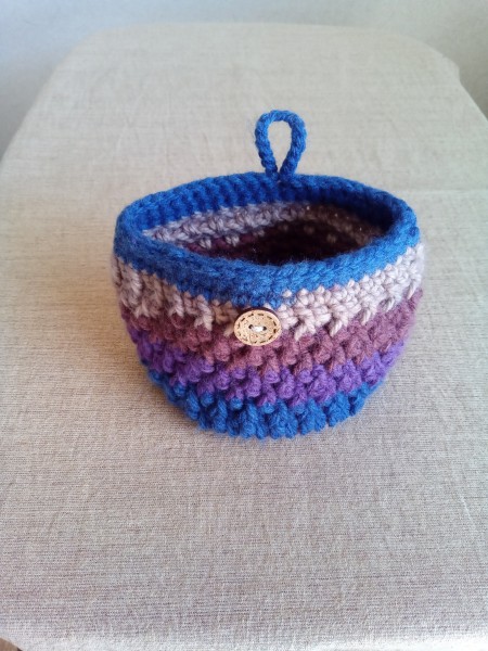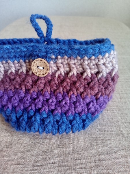 初めて長編みの表引き上げ編みで、ポーチを作りました。