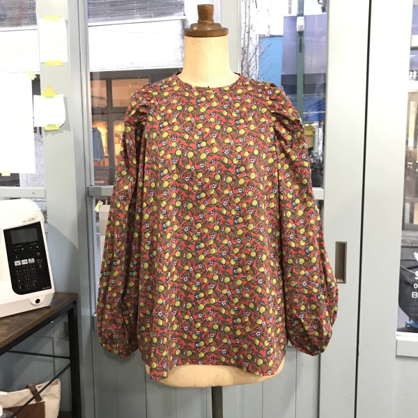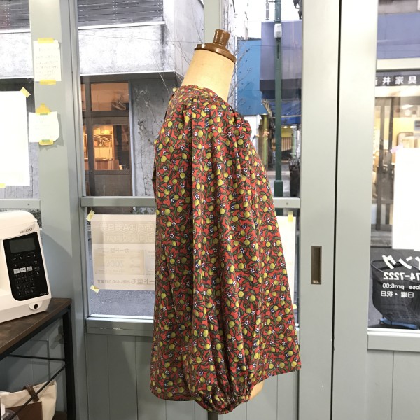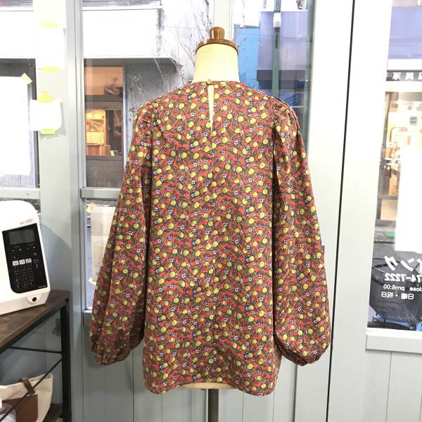 洋裁教室生徒さんの「こんなブラウスが作りたい」というリクエストにお応えして、パターンを引き、リバティで標本制作。