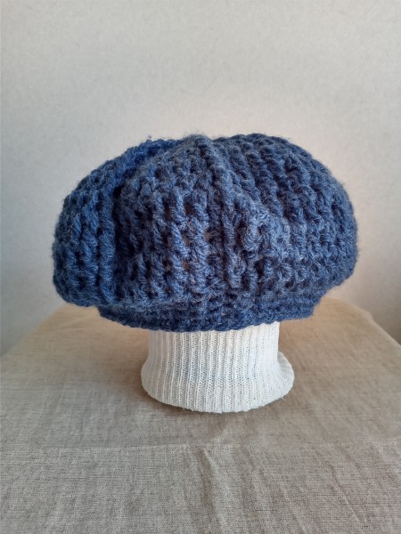 長編みと引き上げ編みのベレー帽です。ネットの作品を参考にさせていただきました。スイスイ編めて楽しかったです。