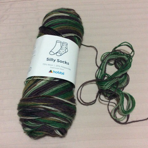 毛糸は、デンマークの「hobbii」という会社の迷彩柄になるソックヤーンです。