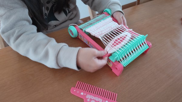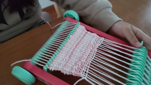 | 長女(6歳)が手芸デビューです。 おもちゃの織り機を使ってコースター作りに挑戦しました。 楽しく取り組めたようで良かった。 手芸を好きになってくれるといいな。 |