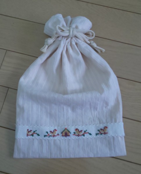| 昔購入していたFELISSIMOのクロスステッチテープの会キット(今はないと思うけど…)やっと作れました。 テープなのでタオルやポーチなど、何につけても良いのですが御朱印帳入れ用に巾着型ポーチにしました。 テープにするクロスステッチは小さい柄になっているので糸の色を間違えないように注意しながら刺しました。なかなか可愛い巾着になったと思います。 |