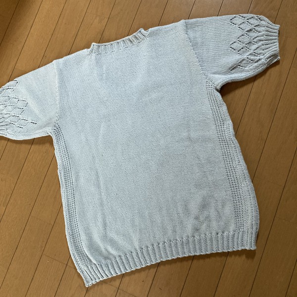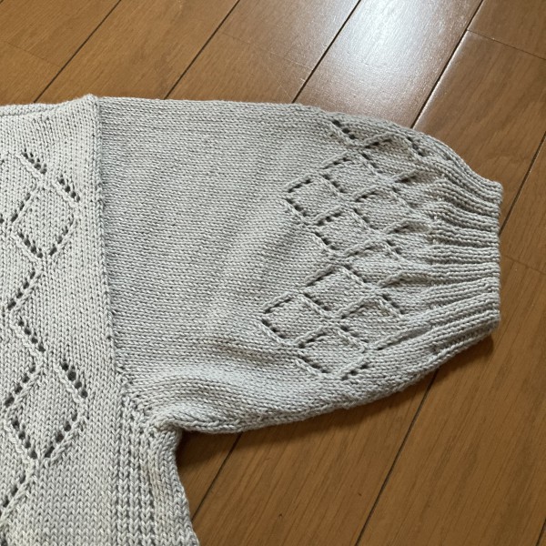 仕上がりサイズ 丈61㎝ 幅51㎝ 袖(拾い目部分から24㎝)