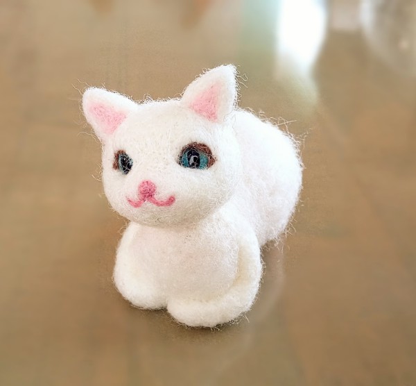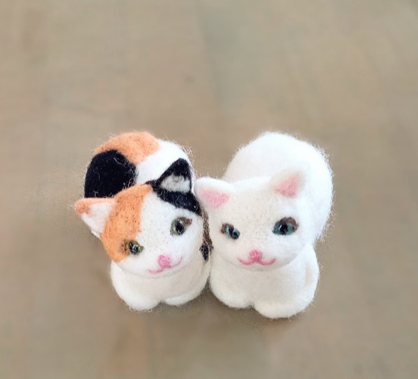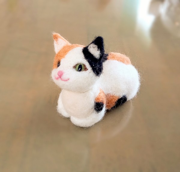 羊毛フェルトで今、よく耳にする「おててないない」香箱座りをする猫を作りました。