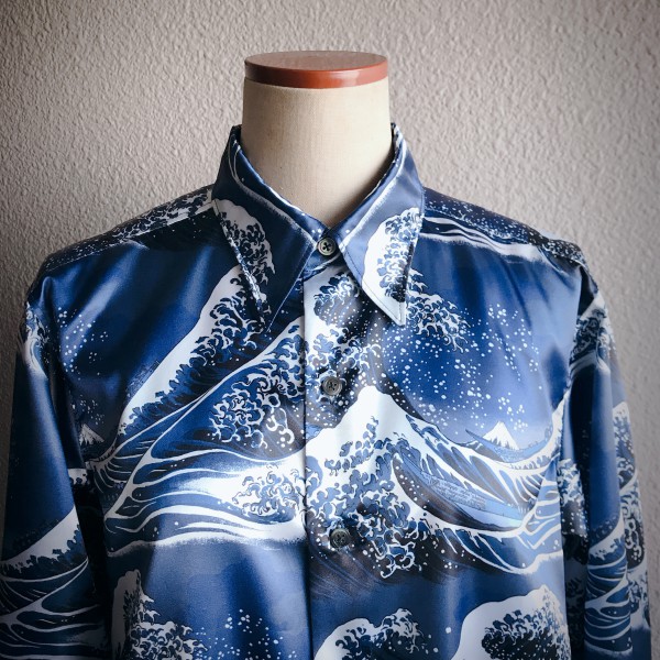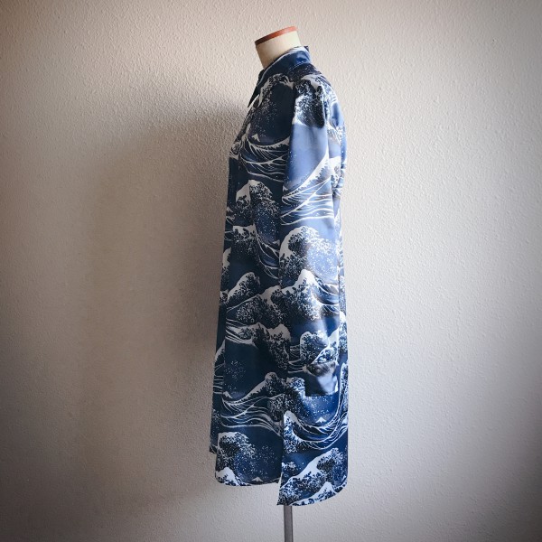 葛飾北斎ポリエステルプリント生地で、双子boy用ロングシャツを制作しました。
