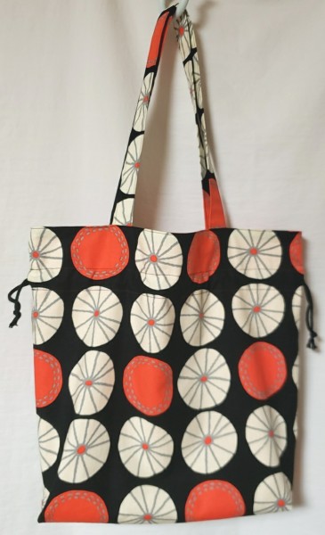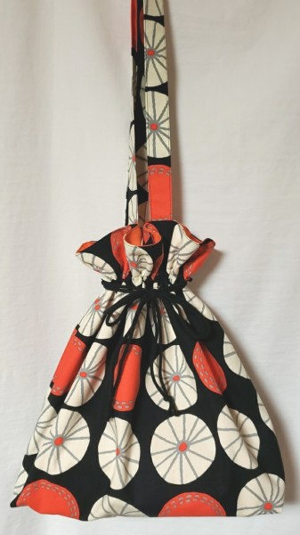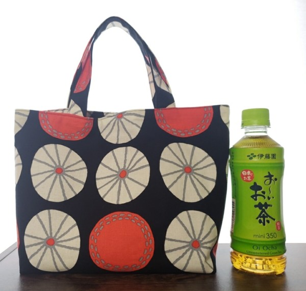 北欧調の布のようですが私には和風にも感じたので、巾着バッグとミニトートバッグを作ってみました。残った布で横長のマルチケースも作りました。